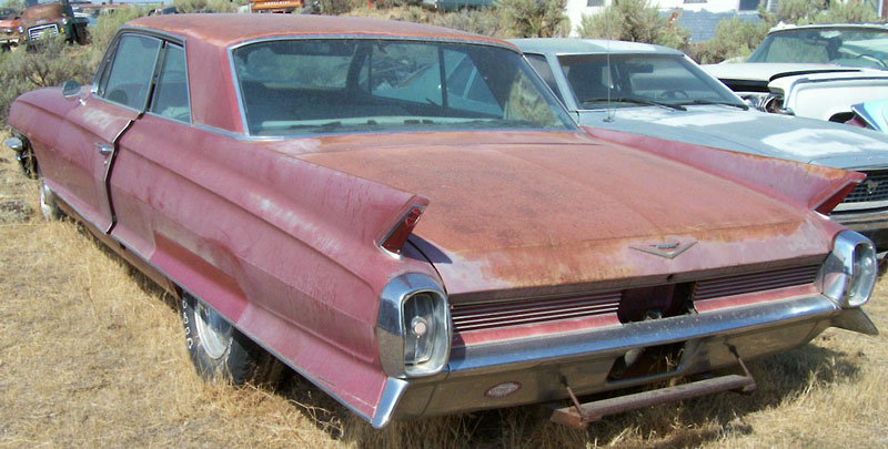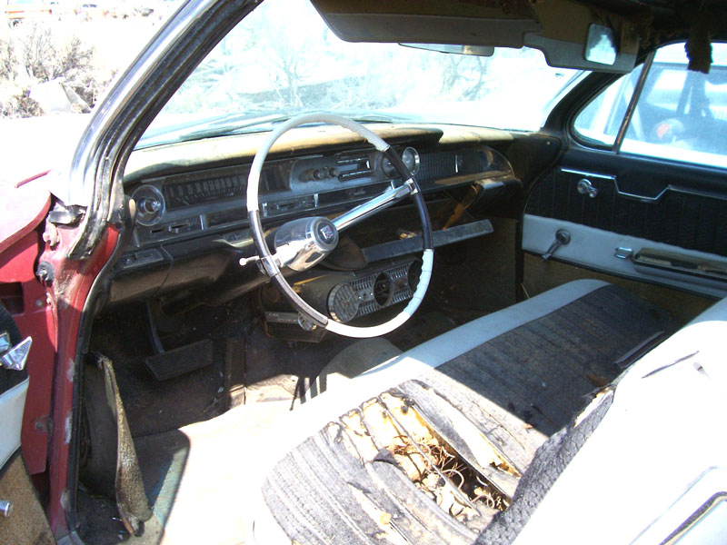This burgundy 1962 Cadillac Series 62 2 door hardtop is a very straight, solid high desert classic car ready to be restored or customized. The body is very straight and solid. The hood nose and right door are dented. The left tail light lens is broken. The hubcaps are all there. The glass is good. The car has a trailer hitch. The black, grey and white interior is all there. The dash is complete. The floors are solid. The car has aftermarket air conditioning. The center and right directional controls are missing. The 390 CID 325 HP OHV V-8 motor and automatic transmission are all there. The running condition is unknown. The car has power steering and brakes. This is a nice 62 Caddy and will make an easy restoration project.