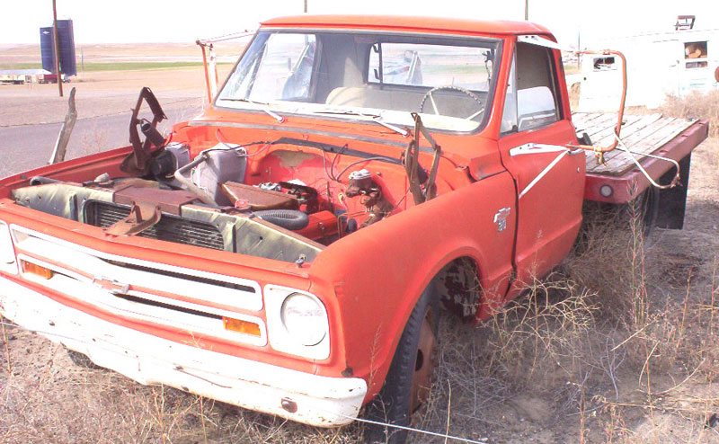 This red 1967 Chevrolet C-30 one ton flat bed is a very straight, solid, dry Idaho farm truck ready for a complete restoration. The hood is missing. The bed is in good condition. The 307 CID motor is complete. The interior is all there. It has not run in many years so it needs to be gone through. The truck is $3,000