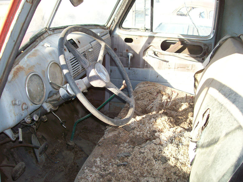 This red 1951 Chevrolet Series 3100 1/2 ton 116" SWB commercial pickup truck is a mostly complete classic truck ready to be restored or customized. The body has solid and dry western desert sheet metal. The front fender tails at the running boards, lower cowl and rear lower cab corners are solid, except there is a little rust starting in both cab corner bottoms. Usually rust is found in these areas of most 48-53 Chevy trucks but not this one. The grill has some dents and bends. The front splash pan has some dents and bends. The truck has an optional chrome front bumper. The running board sides are dented. The left rear fender is out of position. The tail gate is not stock and there is no rear bumper. The backs of both rear fenders are dented. There is a dented area in the front of the right rear wheel well. The tail bottom of the right rear fender has been cut away. There is a little rust in the right inner rocker under the door. The truck has add-on front fender turn signal lights. and add-on tow mirrors. The interior is complete except the radio and right door panel are gone. The right speaker grill bars have been cut away. All the gauges and controls are there. The 216 CID OHV motor is missing the valve cover, carburetor, air cleaner, distributor cap and horn. The engine compartment battery rack is not stock. The four speed manual floor shift transmission and drive train are there. Here is your opportunity to restore or customize a 51 Chevy pickup with solid sheet metal.