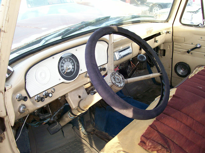 This Bengal tan 1964 Ford F-100 Styleside 1/2 ton pickup is a mostly complete classic truck ready to be restored or customized. The truck has a Custom Cab hood and left door handle. The grill is dented. There is a star burst crack in the right windshield. The left door is sprung and the sheet metal is bent along the hinge seam.The tailgate handle is missing and the right stop light lens is broken. There are mounting drill holes in the sides of the box. There is a dent in the right rear top box corner. The inside of the box and inner fenders are dented. There is a dent in front of the right rear wheel well. There is rust in the right rear lower cab corner and in the tail of the right front fender. There are drill holes in the doors. The front fender badge "Twin I Beam" inserts are faded. The truck has add-on tow mirrors, heavy duty rear tow bumper and custom wheels. The left rear brake drum and wheel are off the truck. The truck has a tan interior and the seat, steering wheel, door speakers and radio are not stock. The dash and gauges are all there. The floor is solid. The 170 CID OHV 2V 101 HP inline six cylinder motor is all there. The air cleaner is not stock. The radiator is missing. The running and driving condition is unknown. Here is your chance to restore or customize a desirable 64 Ford pickup.