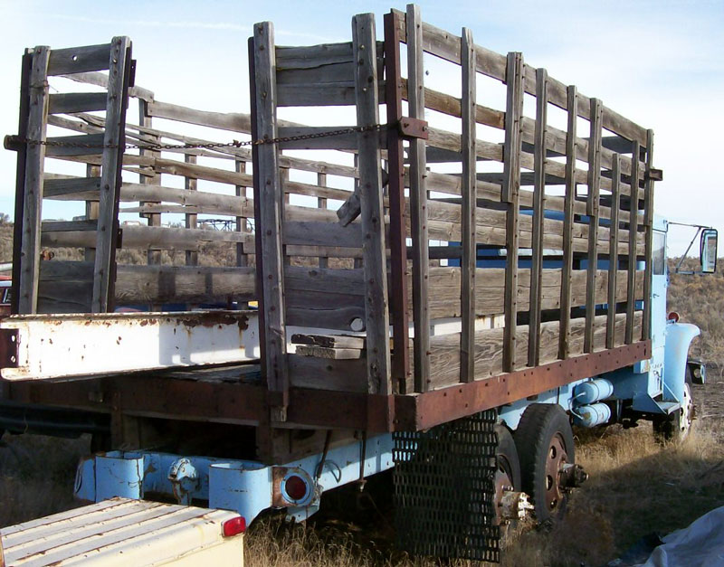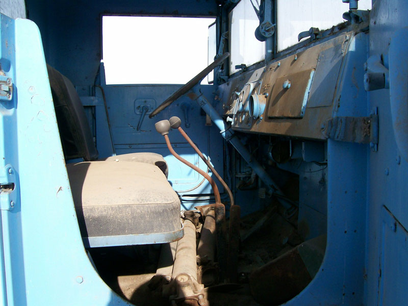 This blue 1953 GMC XM-215 6X6 tandem twin screw dump truck is a very complete commercial vehicle ready to be restored. This truck was originally a dump truck as indicated on the VIN plate. The dump bed and hoist are gone and the truck now has a frame-mounted stake bed. The truck has low and high range and 4X6 to 6X6 shifter which shifts the rear tandem axle in and out. There are some dents in the body. The front bumper and splash pan have some dents and bents. The tandem axle dual wheels are missing. The hood has some dents in the front. The behind-cab running board steps are gone. There are some dents in the lower back of the cab. The front hubs are off and in the cab. This truck has separate drive lines for the tandem axles and the rear axle drive line is out and inside the cab. The interior as all stock, except a shift handle has been welded to the high/low shifter post. The original black bucket seats are there. The dash and gauges are all there. The floor is solid. The heater core is out and on the cab floor. The firewall has been cut below the steering column. The 303 CID OHV inline six cylinder motor and four speed manual floor shift transmission are all there. This truck was running and driving and driven to it's current storage location about ten years ago. The fuel and brakes will need to be cleaned and serviced to put the truck back into service. Don't miss this opportunity to restore a desirable GMC 6X6 twin screw truck. Please call (406) 318-0270 for details about this restorable classic GMC project truck.