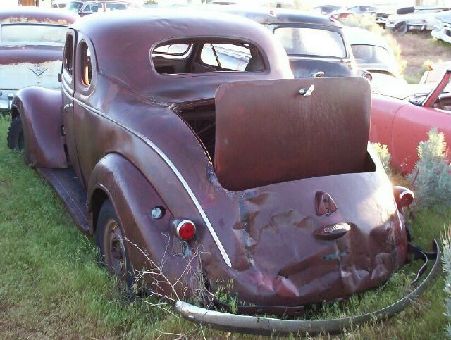 This 1937 Dodge D5 rumble seat coupe is a very solid, straight project coupe ready for restoration or hot rodding. The hood and headlight buckets are missing. The deck panel below the trunk and the right front fender have repairable dents. There are some small dents in the roof above the rear window. This car went through a fire and there is some distortion mainly in the right quarter and door but it could be repaired. The grill is good. The bumpers and side trim and good. There is damage to the sheet metal surrounding the right rear bumper brackets. All the glass is gone. The doors are good and the rumble seat is complete. The trunk floor have some repairable rusted areas. All the gauges are gone. The seats are missing. The inside floor is solid. There is no motor or transmission. The D5 R/S coupe is a perfect candidate for restoration or customization. Please call (406) (406) 318-0270 for details about this 37 Dodge coupe. For sale $4,000.
