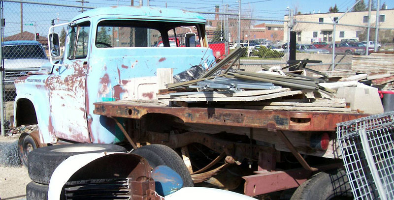 This blue 1958 Dodge model M6 W-100 Series Power Wagon 4X4 V-8 1/2 ton flatbed truck has a very solid, straight body and is ready to be restored or customized. The body and chassis are not rusted. The Dodge "G" hood leter is broken. The right hood "Wagon" badge is missing. The front parking light lenses are broken. The rear glass to missing. The interior is all there except the radio, speedometer and gauge center plate are missing. The 315 CID V-8 motor and drivetrain are all there. This is a nice truck and a good opportunity to build a 58 Power Wagon. Please call (406) 318-0270 for details about this 58 Power Wagon. For sale $3,000.