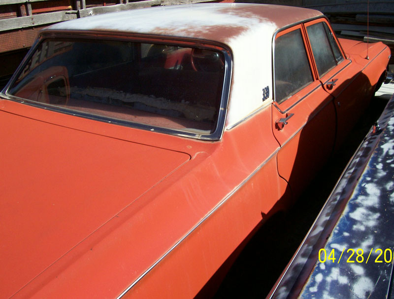 This red 1963 Dodge 330 4 door sedan is a former taxi cab ready to be restored. The body is straight and solid. There are a few small dents. The lower left quarter panel has a scrap. There is some rust in front of the right rear wheel at the bottom. All the trim is there. The glass is good. The red interior is all there except the radio is gone. There are speaker holes in the lower front doors. The floors and truck bottom are solid. There is a trailer hitch. The car has a 318 CID 230 HP V-8 and three speed manual transmission with column shift. The motor is complete and nothing has been removed or disconnected. The operating condition is unknown. Please call (406) 318-0270 for details about this restorable classic project car. For sale $3,000