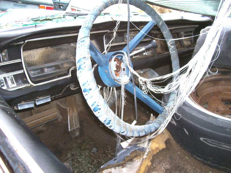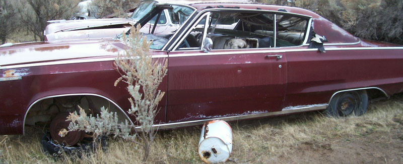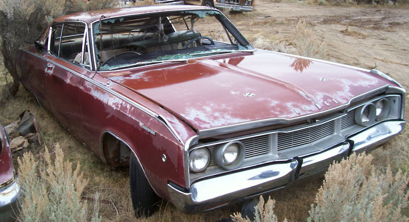 This red 1968 Dodge Polara 2 door hardtop is a very dry, complete and straight classic project car ready to be restored or customized. The body has excellent, dry and solid western desert sheet metal. The car has a black vinyl top, now peeling. The body is very straight. The windshield is broken. The car had after-market hood latches, now gone. The right rocker trim is missing. Both tail lights are damaged. There are some dents in the rear bumper. The deck lid (not visible in photos) was inspected and it is good. The black interior is all there. This is a bench seat car. The floors are solid. The dash gauge shield is broken. The 318 CID 230 HP 2 barrel V-8 and automatic transmission are all there. The car has power brakes and power steering. The air cleaner and radiator are missing. The running condition is unknown. The car will be shipped rolling with not-stock wheels. This is a very straight, solid 68 Polara and you won't be doing much body work building your stock restoration or custom muscle car. Please call (406) 318-0270 for details about this restorable classic project car.
