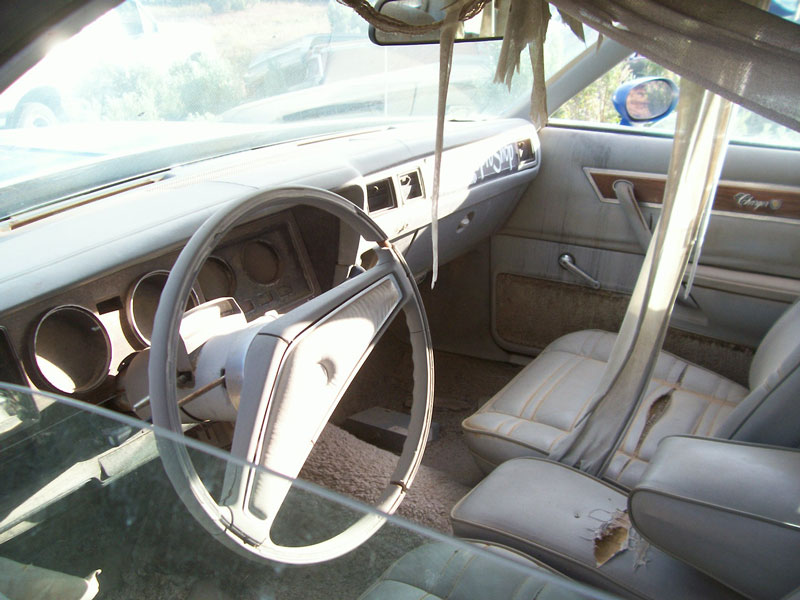 This Wedgewood blue 1978 Dodge Charger SE Special Edition 2 door coupe is a very straight body and rolling chassis ready to be restored. The body has very straight and rust-free western sheet metal. The right headlight and trim are missing. The left door handle is gone. The glass is good. The left back side of the deck lid is dented. There are a few small dents in the wheel well surround trim. The right door lower trim is missing. The white vinyl top is peeled off. The front hood medallion is bent. The grey bucket seat interior is all there except there are a few misc. parts missing.. This is an air conditioned car with power steering and power brakes. The floors are solid. The 360 CID OHV V4 barrel motor, and radiator are missing. The a/c components are missing. The automatic transmission is loose. Here is your opportunity to restore or customize a 78 Charger SE. Please call (406) 318-0270 for details about this restorable classic project car.