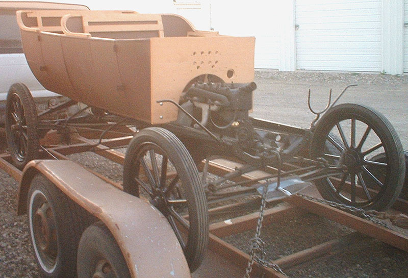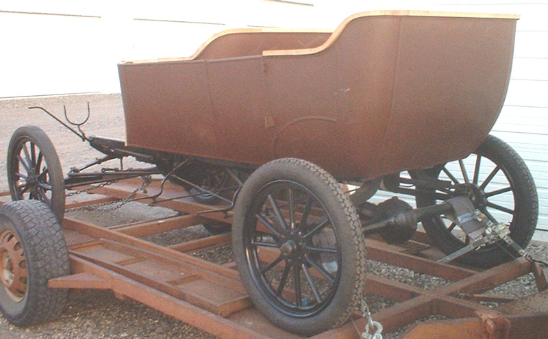 This 1913 Ford Model T three door touring car is a started restoration project ready to be completed. This restoration was started by the late Lou Rector who did many restorations for Ford collector Ed Towe. The body is a 20 year old Rootlieb reproduction and has all new wood. The doors are hinged but there are no door latches. The right front fender is missing. The rear fenders are off the car. The Prestolite tank brackets on the right running board are not correct and do not come this the car. There is a complete top assembly with a kit to recover it. All of the correct brass headlamps, side lamps and tail lamp are good but there is no carbide generator. The gas tank, hood and brass radiator are off the car and included. The auxiliary transmission and Prestolite tank shown in the parts photo are not included. The original 1913 four cylinder Model T motor #281047 and drive train are believed to have been rebuilt by Lou Rector who is no longer living. The chassis looks good and it has good wheels with new tires. Only what is shown in the photos, with noted exclusions, is included.Here is your chance to complete a very nice 1913 Ford T touring car with most of the work done. Please call (406) 318-0270 for details about the restorable classic 13 T touring project car.