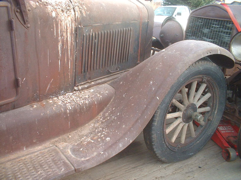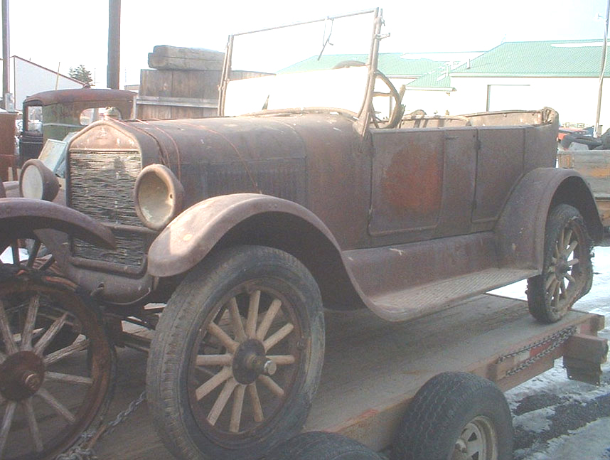This 1926 Ford Model T 4 door touring car is very complete, all original, car ready to be restored. The body is straight and solid. There is some minor rust in the lower part of the back and we have a good replacement panel. The top assembly iron is there and the wooden bows are missing. The windshield posts are cracked and have been reinforced with steel straps.The wooden wheels are all there, except there is no spare. The seats are missing. There is rust in the floor under the rear seat. The earlier-year 177 CID L-head inline four cylinder 20 HP motor, transmission and drive train are all there except the coils and coil box lid are missing. Here is your opportunity to build an all-original un-restored and solid 26 Ford T touring car. Please call (406) 318-0270 for details about this vintage restorable 1926 Ford touring project car. For sale $6,000