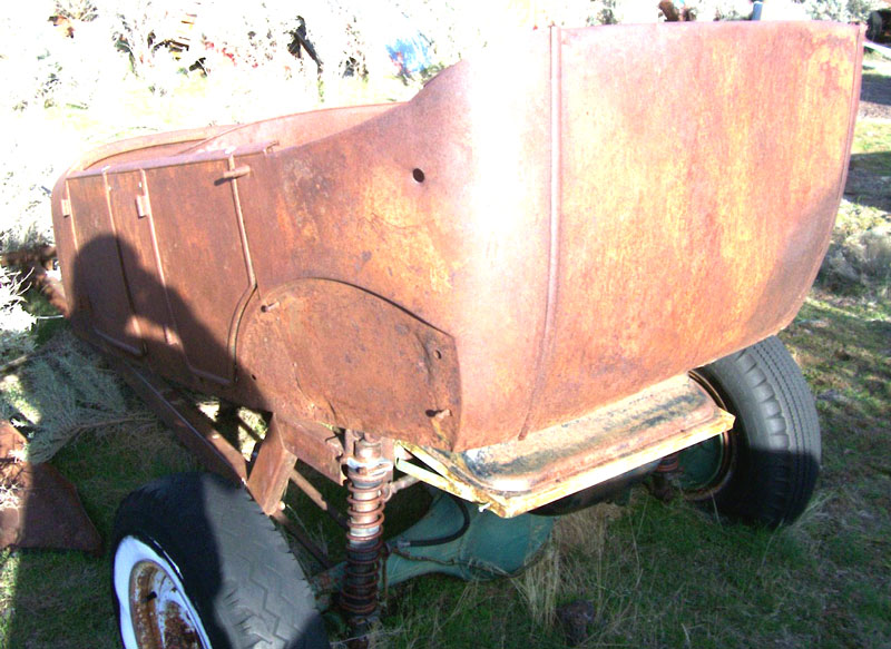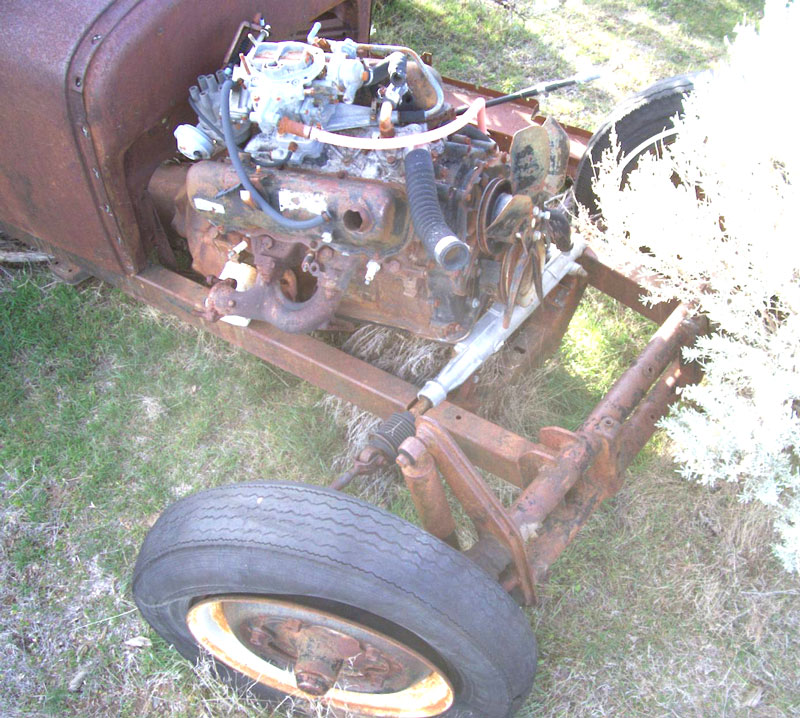 This 1926 Ford Model T touring car is a started old school hot rod project ready to be finished. The very solid main body has not been fitted to the chassis yet. There is no front body, rear fenders, top or interior. The left rear quarter has a repairable dented area. Otherwise, the sheet metal is solid and rust-free. Someone spent alot of time building the custom chassis and it is well done. The unknown make rear end uses coil springs and drag links. The unknown front suspension is swing-arm independent suspension with rack-and-pinion steering. The 171 CID 2.8 liter Ford Mustang motor and four speed transmission is sitting on the chassis and has not been installed. The condition of the motor and transmission is unknown although it is unlikely the builder would have started with a bad power train. If anybody can identify the differential or front suspension that would be helpful. Here is your chance to build an old school hod rod on a well-built custom chassis. Please call (406) 318-0270 for details about this restorable vintage Model T hot rod project car. For sale $3,500.