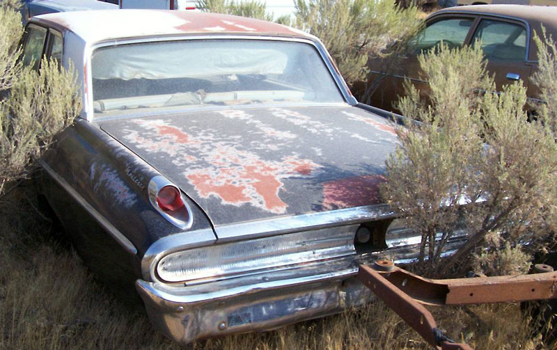 This black and white 1962 Mercury Monterey Z-code 2 door sedan is a very straight, solid, complete desert project car ready to be restored. The body is very solid. The glass is good. There are some repairable dents in the rear bumper. The left tail light lens is broken. The grill badge is missing. The antenna is bent. The hood hinges are bent. The gas filler door is missing. The right quarter trim is dented. The right front hubcap is missing. The car has seat covers. the original black and white interior is all there. The dash is complete. The car has power windows and the driver control is missing. The car has the optional Z-code Monterey Custom S-55 390 CID 4 barrel 300 HP V-8 motor and automatic transmission. The operating condition is unknown. This is a rare opportunity to build a Z-code-optioned 62 Merc 2 door post. Please call (406) 318-0270 for details about this restorable classic 62 Merc project car. For sale $4,000.