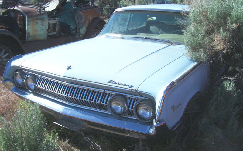 This light blue 1964 Mercury Park Lane Marauder 4 door fastback hardtop is a solid, complete project car ready to be restored. Only 3,658 four door Marauders were made and was the top of the line for Mercury in 1964. The car has been hit in the right rear and the right rear quarter panel, deck lid and right half of rear panel and bumper need to be repaired or replaced. There are some small dents and tarnishing in some of the trim. The front grill and bumper is good. The antenna is missing. All the glass is good. The blue interior is all there except the radio is missing. The floor is solid. This car has the optional Z code 300 HP 390 CID 4 barrel motor and 3 speed automatic transmission. The power steering pump is missing. The car was running when it was hit and has been stored ever since. I had a red one jsut like this. They are very cool looking and they really fly with the Z-code motor. Please call (406) 318-0270 for details about this restorable classic 64 Merc project car. For sale $4,000.