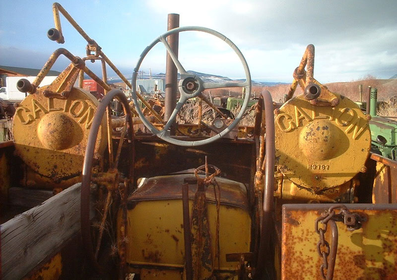 This yellow 1935 Oliver Hart-Parr Model 2844-powered Galion Motor Patrol Grader Model G9336A is a very scarce complete machine ready to be restored. This is a very scarce grader and the only one we know of or have ever seen. The grader uses The Oliver Hart-Parr tractor to power the grader and carry the rear dual drive wheels. The motor was said to have been rebuilt a few years before the grader was retired and stored but the motor is now stuck. The magneto and carburetor are missing and the exhaust manifold is cracked. It appears all of the Galion grader is there. This is a must-have, only one find for any serious Oliver Hart-Parr collector so don't miss out. For sale $7,000