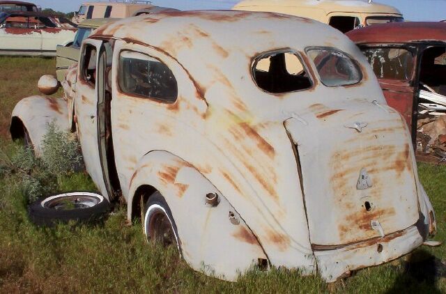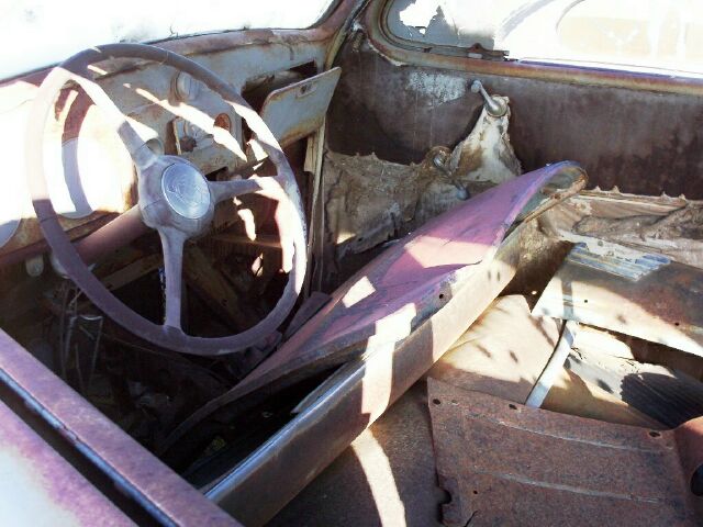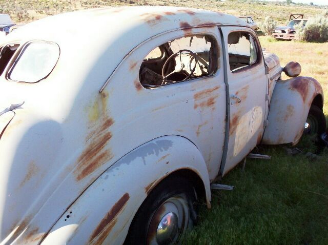 This grey 1938 Plymouth Deluxe P6 2 door sedan is a restorable project car ready to be customized or restored. The body has solid and dry western desert sheet metal except there is some rust in the right rocker. There are dents in the fenders. The deck lid is dented and bent. The lower back panel is dented.  The running boards are missing. There are some bends in a couple of the grill bars. The front bumper is off and the bumper mounts are gone. The rear bumper is inside the car. The dash is complete. The seats are missing. The motor and radiator are missing. The inner fenders are inside the car. Late 30's trunk back 2 door sedans are in big demand for customs and low riders, as well as for stock restoration projects. Please call (406) 318-0270 for details about this 38 Plymouth 2 door post sedan.