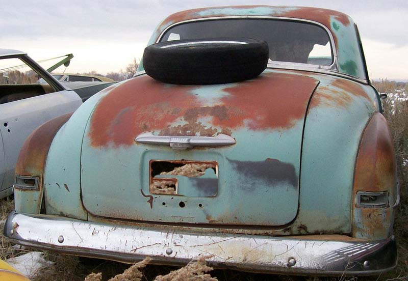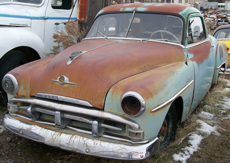 This light blue 1952 Plymouth Concord 3 window 3 passenger business coupe is a very solid project car ready to be restored or customized. Only 14,255 of this model were made in combined 1951 and 1952. The body has good solid western sheet metal except for a couple small rusted areas. The left headlight trim is dented. The front bumper has dents and scratches. The grill is dented and has some deteriorated pieces. The parking light lenses and trim are gone. The hood badge insert is gone. The left windshield and right door glass are broken. There is a chip in the right windshield. The lower front of the right front fender and bumper are dented and bent. There is a dent in the roof and left door at the top front of the door window. There is a dent in the back of the driver outside mirror. The left door is slightly sprung and the sheet metal is damaged on both sides of the hinge seam. There is a little rust in the lower front of the left door. The left door lock is missing. The left quarter trim is dented and the tail of the trim is bent. There may be a little rust in the lower front of the left quarter. There is a little dent in the tail of the left quarter. The tail light lenses and trim are gone. The left quarter is bent on the inside back near the splash pan. There is some rust in the back panel on both sides at the bottom and below the deck lid. The rear bumper has scratches and the bottom is pulled out. The right end of the rear bumper is bent and the quarter panel is dented. The grey interior is all there except there are some knobs missing. The gauge panel is loose. The floors appear to be solid but the flooring has not been pulled up for inspection. The hood and deck lid are stuck. The 218 CID L-head 97 HP inline six cylinder motor, radiator and transmission are missing. Here is your chance to restore or hot rod a desirable 52 Plymouth 3 window coupe.