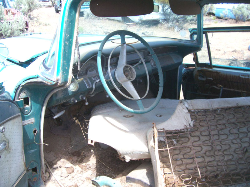 This 1955 Pontiac Chieftain 870 Deluxe 2 door post sedan is a fairly good classic vehicle body and chassis ready to be restored or customized. A relatively small number of these two door posts were made with a total of 28,950 produced in 1955, compared to 72,608 Catalina Deluxe 2 door hardtops. The body has solid and dry western desert sheet metal. The right side has been hit on the door. The door needs to be replaced. The rear of the right front fender and front of the right quarter are also damaged. The right door sill is pushed in and needs to be replaced. There is a crease along the bottom of the left door. The hood Pontiac letters and headlight trim are missing. The center grill painted insert is damaged in the center the left side and the lower chrome bumper is dented. The left center grill trim band is gone. The stop and backup light lenses are broken or missing. The rear bumper is dented in the center. The curved front and rear glass are good. The flat quarter glass is broken. The two tone blue interior is missing the front seat, radio and center horn emblem. There is a not stock cover over the radio hole. The dash and gauges are all there. The speaker grill badge is missing. The rear seat is there. The floor is solid. The 287 CID OHV 173 HP V-8 motor and automatic transmission are gone. The drive line is inside the car. Here is your chance to restore or customize a 55 Chieftain 2 door post. Please call (406) 318-0270 for details about this restorable classic project car.
