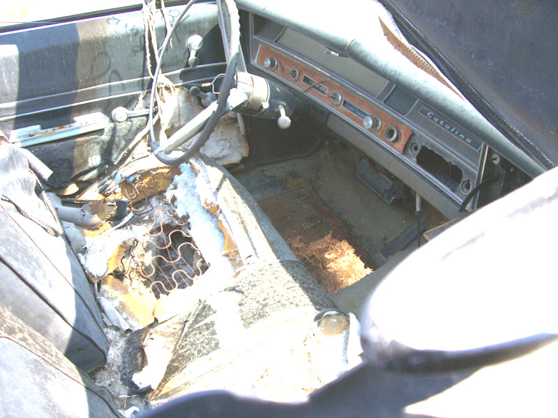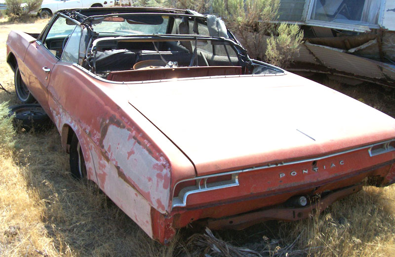 This red 1967 Pontiac Catalina Convertible is a fairly straight car ready to be restored. Both bumpers are missing. There are some small repairable dents in the chrome grill surrounds. The side trim is missing. Both rear wheel wells have been modified with flares which are not completed. The same mirrors are missing. The windshield is good. The windshield trim is missing. The top is all there. The black interior is all there except the radio and rear seat are missing. The floors, trunk bottom and top bay deck are rusted and need to be replaced. The car comes with a correct 400 CID V-8 motor, radiator and Turbo-Hydramatic transmission, good front and rear bumper cores, good hood and rear seat. There's nothing like a head-turning 67 wide track Pontiac Convertible so don't miss this chance to build one. Please call (406) 318-0270 for details about this 67 Catalina convertible. For sale $5,500.