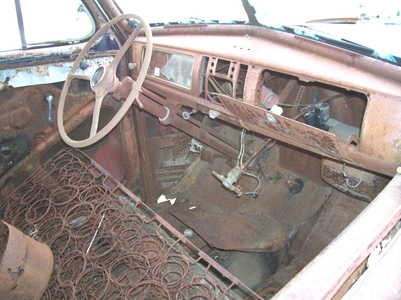 This 1939 Chevrolet Master Six 5 window 2 passenger coupe is a very complete classic car ready for restoration or customization. The running boards are dented and rusted. The deck lid has a dent and tear at the bottom on the left side. The body panels between the quarters and deck opening at the bottom are dented and rusted. The deck lid hinges are sprung. The doors and right body panel between the door and the quarter are rusted at the bottom. The door hinges are working. There is a minor dent in the right front fender in the front. The headlight lenses are gone. The hood ornament is missing. The right wiper arm is missing. The left front fender has a tear and is missing a piece in the front bottom. There are a coupe small tears in the left front fender edge around the front wheel well. There is a minor dent in the left quarter in the front near the bottom. The left quarter rear bottom is damaged. The tail light assemblies are missing. The bumpers have some very minor dents. All the glass is gone. The front inner fenders are rusted at the bottom. The chassis is solid. The cab has rust in the driver floor in the outer forward flat area. Sime interior parts are missing. The gauge trim is dented on the left side and the glass is broken. The radio and radio panels are missing. The seat springs are there. The trunk is rusted out in the front area. The motor is missing the carburetor, distributor, generator, exhaust system and other misc. things. The rusted air cleaner is in the cab. For sale $2,200.