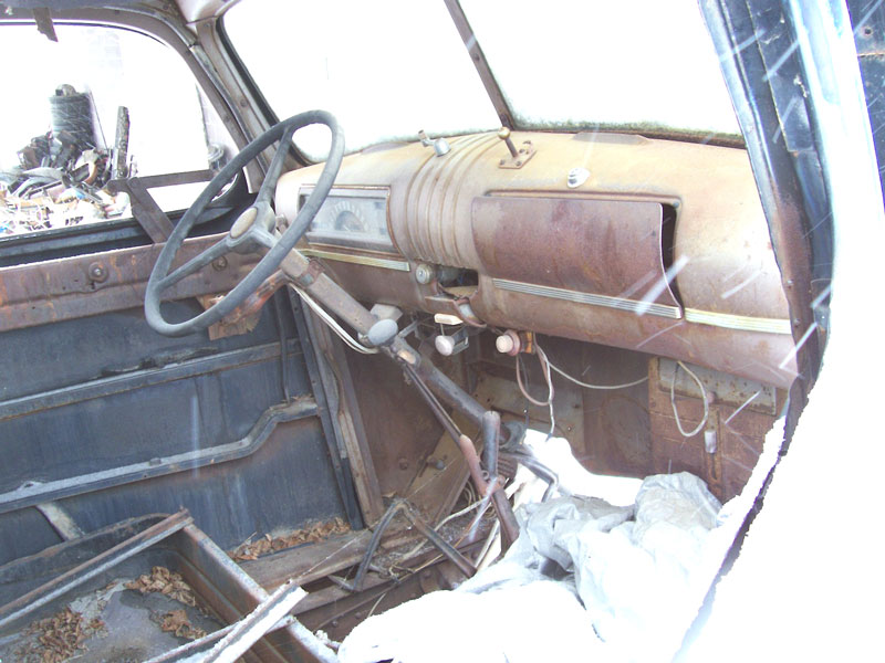 This black 1946 Chevrolet pickup has a very solid cab, doors and chassis.It is ready for restoration, customization or hot rodding. Both front fenders are dented and torn but could be repaired. The hood is sitting next to the truck. The grill is missing. The box is missing. There are dented rear fenders. The bumpers are missing. The motor and radiator are missing. The front axle and suspension are gone. The transmission and drive line are there. The differential and rear suspension are there. The dash is complete. The seat bottom is gone. The floors are solid. This is a good base project truck at a very low price. Please call (406) 318-0270 for details.
