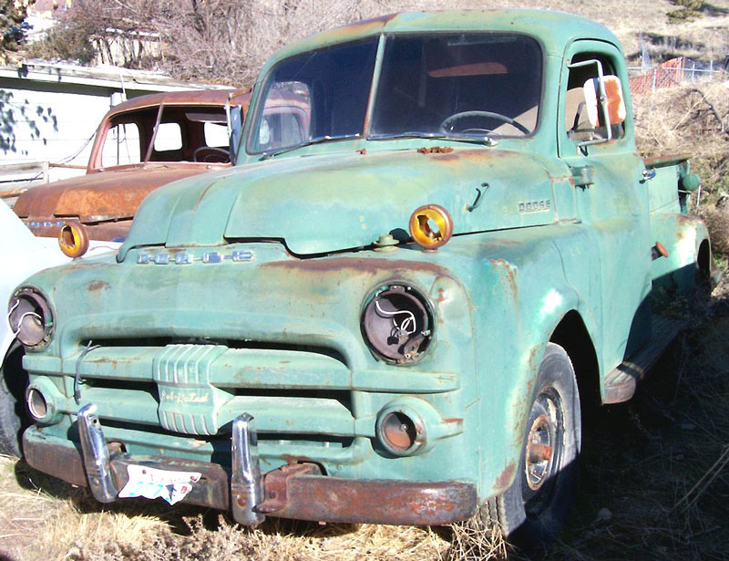 This green 1952 Dodge B-3-B 1/2 ton pickup is a very straight, solid, complete high-and-dry Montana truck ready to be restored. The front bumper guards are not stock. It has a heavy duty rear bumper. The headlight trim is missing. There is a dent in the left front fender by the headlight. There are some small repairable dents in the rear fenders. The right rear fender has a repairable crease. The box and tail gate are good. There is a side spare mount. The bed floor is unknown as it is covered with a sheet of plywood. The interior is all there. The floors are solid. The transmission and engine head are missing. This is a very straight, solid truck so you won't be doing much body work in the restoration. Please call (406) 318-0270 for details. For sale $1,600