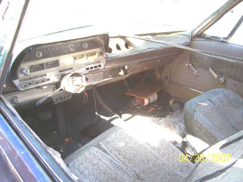 This blue 1963 Dodge Polar 2 door hardtop is a very solid, straight, no-rust V-8 project car ready to be restored. The glass is good. There is wiper burn on the driver's side windshield. The headlight trim is in the trunk. There is a small repairable dent in the top of the grill. There is a non-stock hood scoop. The driver door trim is missing. The right quarter and door trim is missing. Some of the missing trim is inside the car. The left stop light lens is broken. The deck lid lip is dented along the edge on the left side. The rear bumper is bent up in the center. The interior has non-stock bucket seats. The steering wheel is missing. There are 3 non-stock gauge holes in the dash. The radio is missing. The rest of the interior is all there. The car is in the process of being converted to a manual shift car. The clutch pedal has been installed and a hole has been cut in the floor pan for a floor shifter. The 318 CID motor is all there. The radiator is missing. The car has a 3 speed manual transmission. This car is a great entry-level car and is prised right. You can build a cool muscle car of the this 63 Polara. Please call (406) 318-0270 for details.