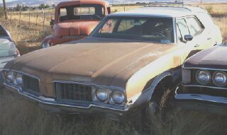 This gold 1970 Oldsmobile Vista Cruiser is a good straight solid complete station wagon ready to be restored or customized. The body is straight and solid. The grill and bumpers are good. All the exterior trim is there. All the glass is good. The interior is all there. The motor and transmission are gone. This would make an excellent restoration project with an updated motor and transmission. Please call (406) 318-0270 for details about this restorable classic project car.
