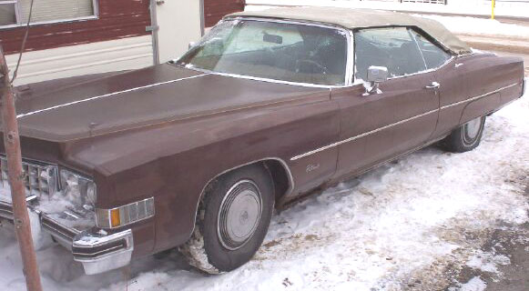This brown 1973 Cadillac Fleetwood Eldorado Series 6L convertible is a very straight and complete front wheel drive daily driver ready to be restored. The body is very straight. The top is good and it has a new windshield. The brown leather interior is in good shape. The car has optional Automatic Climate Control air conditioning and heat. The 500 CID 365 HP special Eldorado V-8 motor runs great. The car has new brakes, tires and shocks. This car goes down the road smooth as glass a 80 MPH. Don't miss this opportunity to own and drive a 73 Caddy Eldorado convertible. Please call (406) 318-0270 for details about this restorable classic project car.