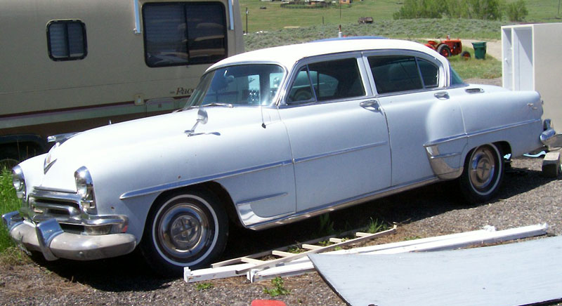 This 1954 Chrysler New Yorker Deluxe 4 door sedan is a very nice, running and driving classic car ready to be enjoyed the way it is or restored. The car has extremely scarce "Airtemp" factory air conditioning. The car has older baby blue paint with a white fabric top. The body is solid and very straight. All the chrome and trim looks good. Some of the letters are missing off the two pillar air scoop "Airtemp" badges. The dash and gauges look nice. The all-original interior is in fairly good shape. The top back of the front seat is worn. It has roadable tires and the hubcaps look good. The car has 331 CID hemi 235 HP IHV V-8 motor and automatic transmission with automatic transmission. It has power steering. The under-hood and trunk air conditioning system is all there. The compressor turns. The air conditioning system needs to be checked and serviced as it is not working. The odometer has 80,892 original miles. Don't miss the opportunity to own a very rare 54 New Yorker sedan with air conditioning. Please call (406) 318-0270 for details about this restorable classic project car. For sale $3,500.