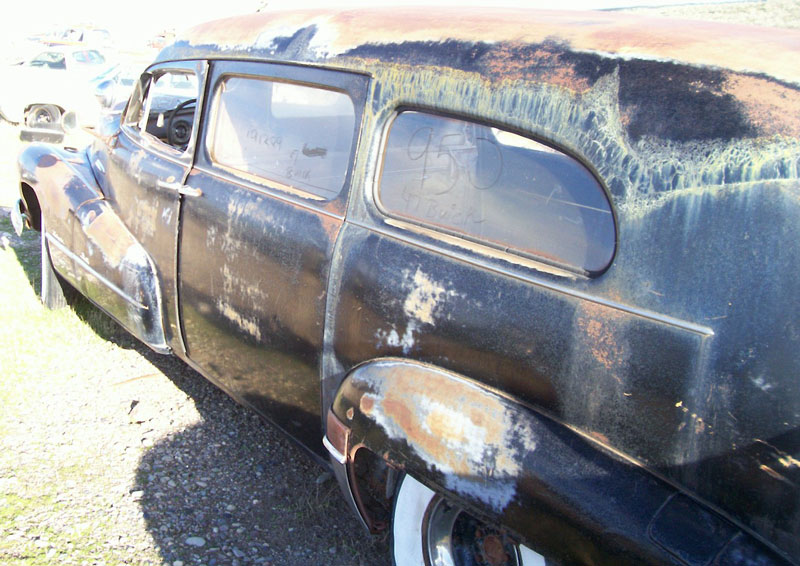 This very scarce black 1947 Buick Roadmaster Flxible hearse is a very solid, complete, high desert vehicle ready for restoration or customization. The body has solid western sheet metal. The right side doors and fenders are dented. The grill and front are good. The doors work. Some of the flat glass is broken.The dash is complete. The interior is all there. The 320 CID inline eight cylinder OHV 144 hp motor and automatic transmission are there, except the head and air cleaner are missing. The hearse is 20 feet in length on a 167" wheel base. Don't miss this ooprtunity to restore this vehicle for your funeral home business to turn it into a custom surfer wagon. Please call (406) 318-0270 for details about this restorable classic project car. For sale $7,500.